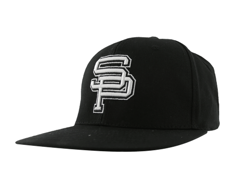 Classic Black Snap-Back Hat. Embroidered Classic SP logo on Front Panel. One size fits most. Adjustable snap. Cotton Twill Material